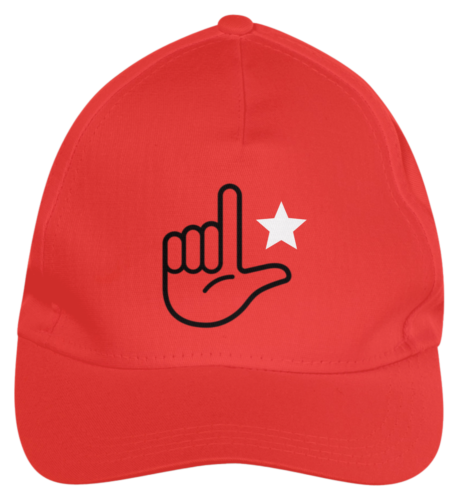 Boné americano com transfer frontal em alta qualidade, aba curva e fecho em tira totalmente regulável com pinos. O modelo veste tamanho "único".